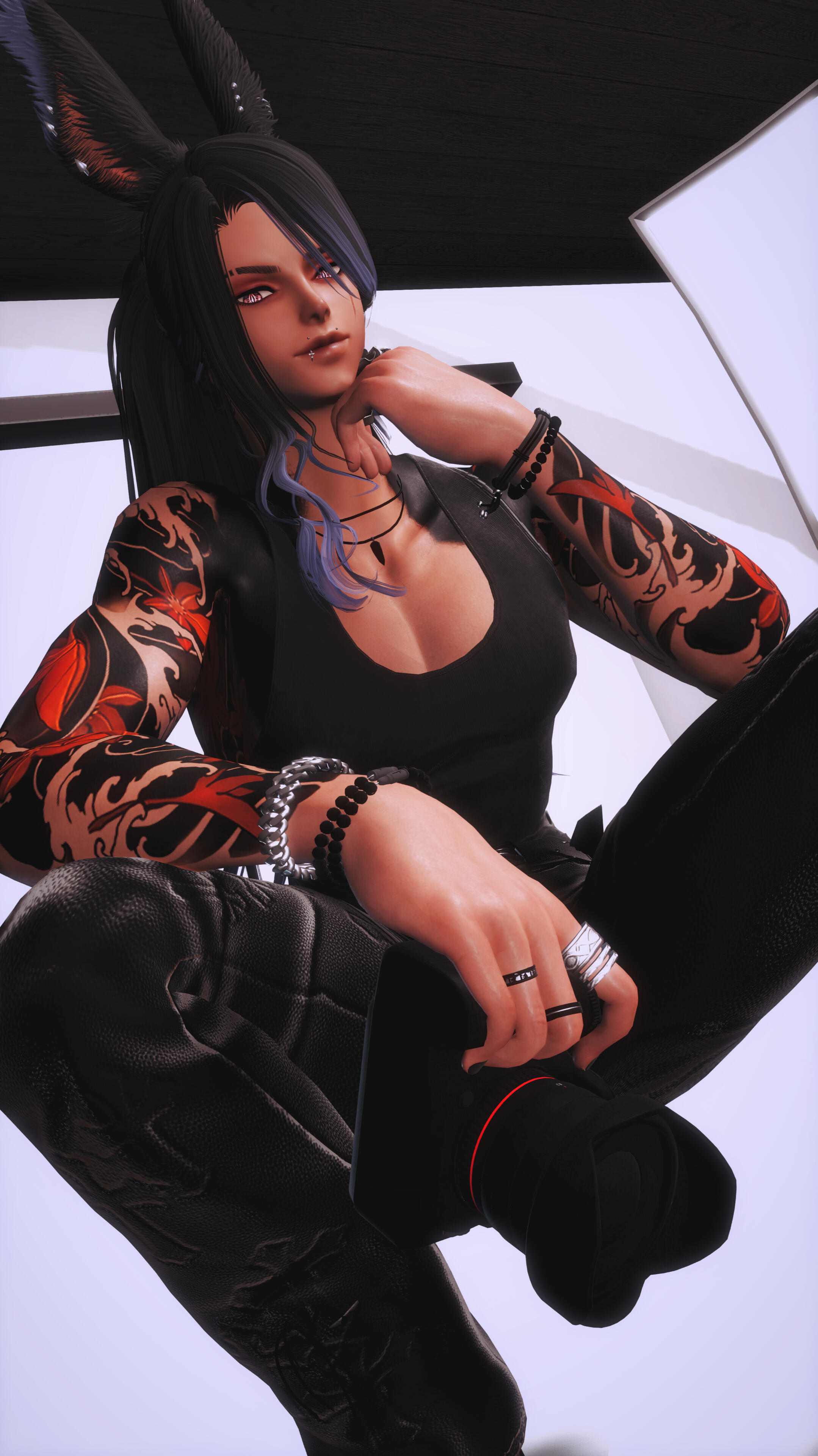 A resident photographer for Konpeki Casino and Club, Cai's primary focus is providing quality content to staff and guests with candid shots during open hours and pre-scheduled photoshoot sessions. The style used is primarily centered on dynamic lighting and poses. Nearly nothing is off limits including sweet, romantic couples shots, moody portraits, and steamy boudoir scenes.